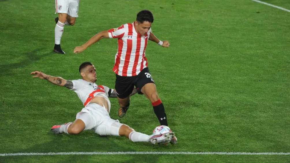 River siguió con una mayor posesión pero no pudo con una defensa ordenada. Estudiantes, a los 34m., tuvo una clarita tras una habilitación de Noguera a Federico Gonzalez que remató de zurda y controló Armani. En el final, una jugada fuerte de Tobio sobre Borré provocó que el local se quedase con diez hombres.