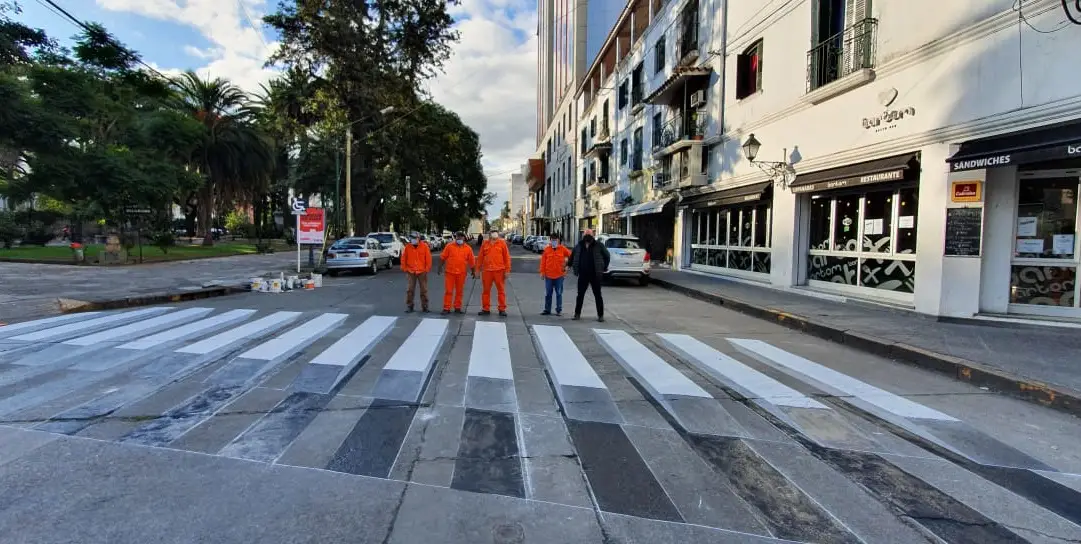 En la oportunidad, se pintaron las sendas peatonales del lugar, que además de indicar el cruce, ostentan intervenciones artísticas, que se realizaron con el diseño y supervisión de Andrés Sierra, quien forma parte del equipo de Cultura.
