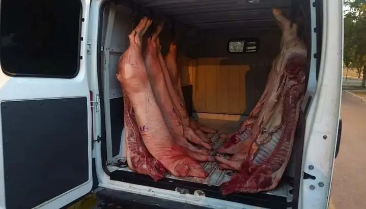 Labraron infracción a un hombre de 42 años por transportar carne en vehículo no habilitado, sin documentación, careciendo de cadena de frío y condiciones higiénicas sanitarias. Contabilizaron un total de 11 piezas con un peso aproximado de 500 kilos, las que fueron secuestradas y decomisadas por personal de la División Rural y Ambiental. Interviene la Fiscalía Penal 1 y el Juzgado de Garantías 1.