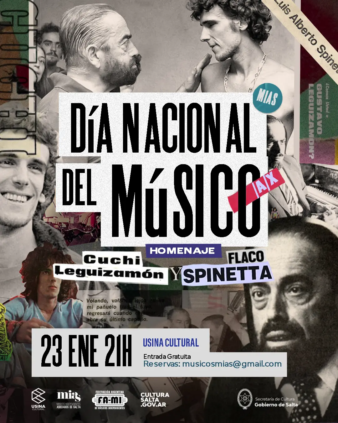 El sábado 23 de enero se realizará un recital homenaje a Gustavo “Cuchi” Leguizamón y Luis Alberto “El Flaco” Spinetta, en la Usina Cultural de Salta, a las 21.