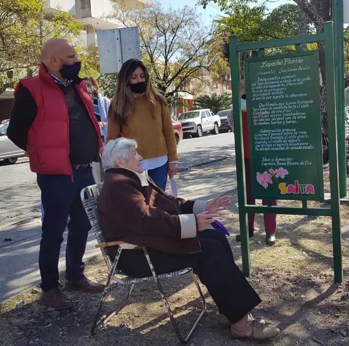 La iniciativa fue de Carmen Sosa Rivero de Lisi, una vecina, y la colocación de la misma en conjunto con los vecinos y el Gobierno de la Ciudad de Salta.
