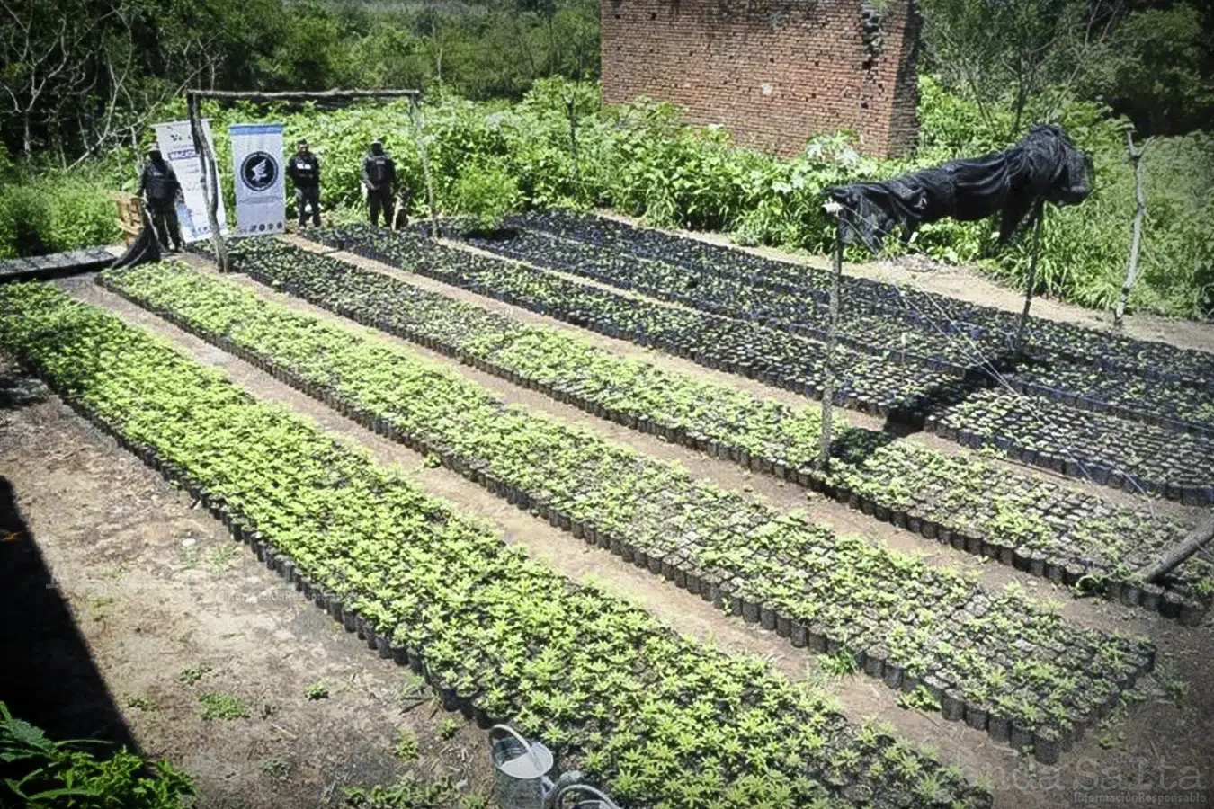 El viernes pasado personal del Escuadrón 53 de Gendarmería Nacional y del Grupo Operativo Conjunto NOA irrumpió en el estratégico campo ubicado en el corazón de la finca Berruezo, sobre la ruta provincial 122, a unos 7 kilómetros del río Pavas del lado salteño, ya que se encuentra al límite con la vecina provincia de Jujuy. Después de caminar varios kilómetros por un espeso monte con una variada vegetación los uniformados llegaron al enorme sembradío de Cannabis sativa. Más de 10.000 plantas de marihuana estaban cuidadosamente sembradas a la espera de ser cosechadas para su proceso y posterior comercialización.
