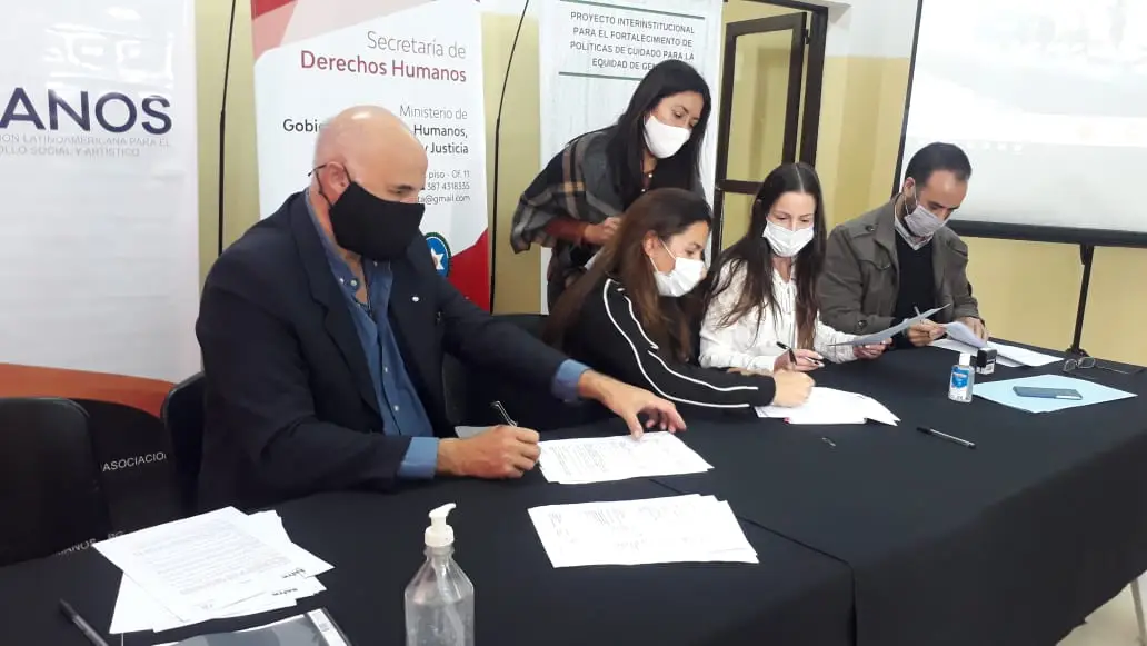 Se realizó la rúbrica de un convenio con la Provincia y la Asociación Manos para trabajar articuladamente en el proyecto intersectorial denominado “Colectivizando Cuidados”.