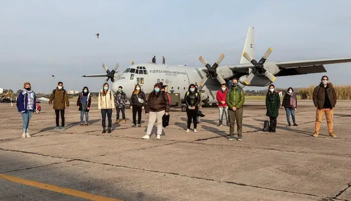 Desde el aeropuerto de Palomar partieron hoy con destino a la provincia cinco enfermeros, cuatro técnicos en emergencia y dos epidemiólogos. El envío incluyó elementos de protección personal como mamelucos, guantes, barbijos y alcohol.