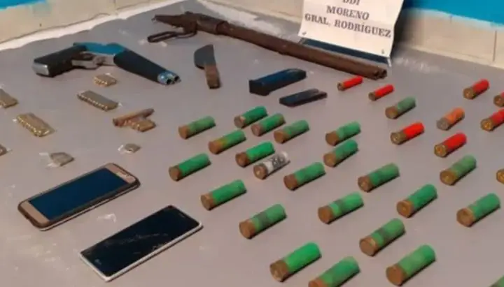El sospechoso, que es conocido como «Chelo«, fue detenido por efectivos de Delegación Departamental de Investigaciones (DDI) de Moreno-General Rodríguez, durante una allanamiento. En el lugar se secuestró un pistolón Rexio 14, una escopeta Winchester, dos cargadores, dos celulares y varias munciones de diverso calibre, según informó el sitio del diario Crónica.