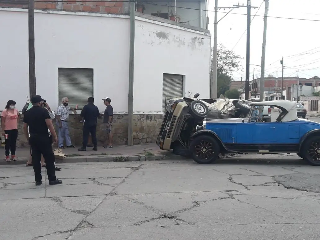 Dos vehículos colisionaron ayer poco después de las 14 en la intersección de calles La Rioja y Gorriti de esta capital. Uno de los rodados es un auto de colección perteneciente a un reconocido coleccionista de este tipo de vehículos.