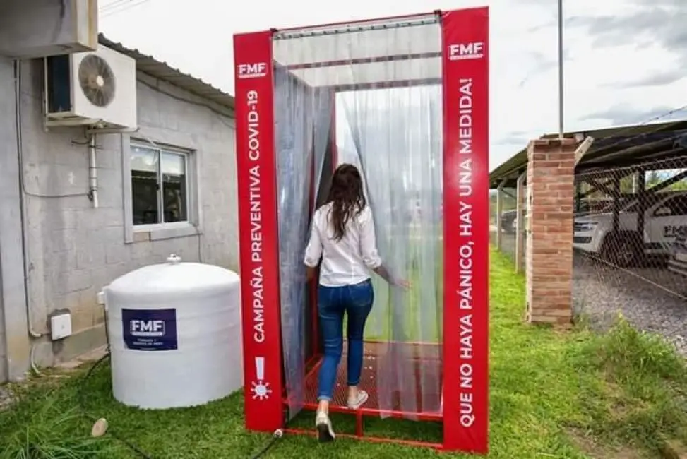 La empresa FMF ubicada en el Parque Industrial fue la que donó al Gobierno de la Provincia tres cabinas para que sean colocadas en lugares estratégicos y de afluencia de gente a fin de evitar la transmisión del coronavirus.